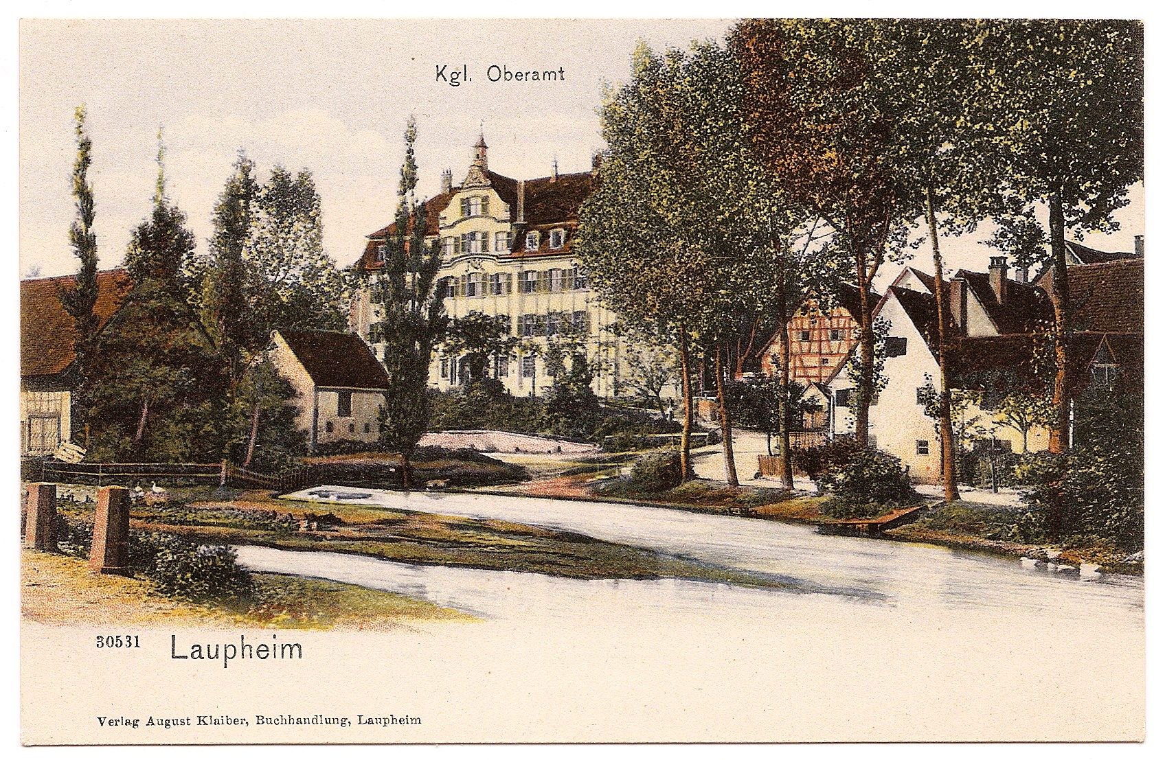 Diese Postkarte zeigt Kleinlaupheim noch ohne die seitlichen Anbauten von 1904.