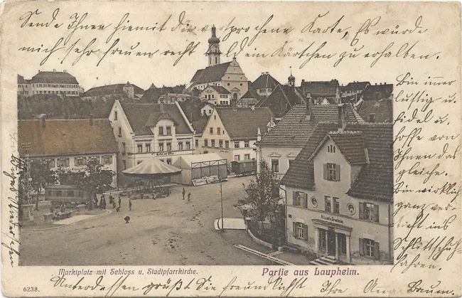 #0889 Partie aus Laupheim. Marktplatz mit Schloss u. Stadtpfarrkirche