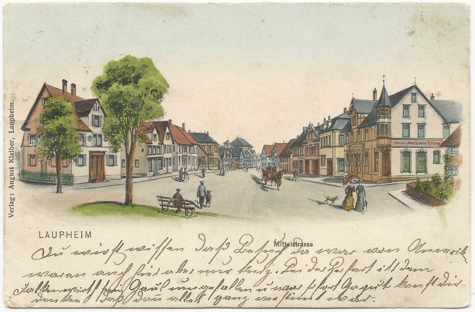 An Fräulein Marie Hensler per Adr. Herrn P. Funk Bergzabern Pfalz Liebe Marie! Besten Dank für Deinen l. Brief, es freut mich, daß es Dir immer gut geht, was ich Dir auch von uns mitteilen kann. Fanny u der kleine Franz waren in der Vakanz hier, konten Sie recht gut brauchen zum Obst auflesen haben dieses Jahr ziemlich bekommen. War am Sonntag in Laupheim bei der Mision war sehr schön. Also viele Grüße von Onkel u Tante Pauline Viele Grüße an Herrn u Frau Funk Bildseite: Du wirst wissen daß Besuch da war von Amerika waren aucxh hier aber nur kurz. Bei der Herfart ist dem Falkenwirt sein Gaul umgefallen u war sofort ( ? ) kanst Dir denken daß dann alles ganz verstimmt war.