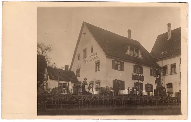 Familie Kalk 17. W. Oak St. Stockton California Unendlich erfreuten und Ihre Grüße u. Wünsche und erwidern dieselben auf das freundlichste! Wir sind Gott Lob mit unserm ? gesund u. hoffen gleiches von Ihnen. Fröhliches neues Jahr wünschend grüßt Sie alle Franz und Hermine Münch Laupheim Württemberg