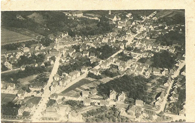• oben Mitte: Schloss Großlaupheim und Stadtpfarrkirche