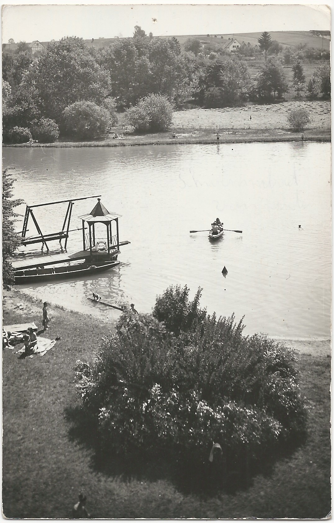 Strandbad Laupheim geöffnet von Mai bis Oktober Liegewiesen, Sportplätze, Erfrischungsräume Handschriftlicher Text (Karte wurde nicht abgeschickt) An Fam. Dreitzler Stg. Heumaden Heumadenst. 384 Es sendet euch kurz aus dem Laupheimer Freibad Viele Grüße an Herr Dreitzler Frau Dreitzler u. an Lore.