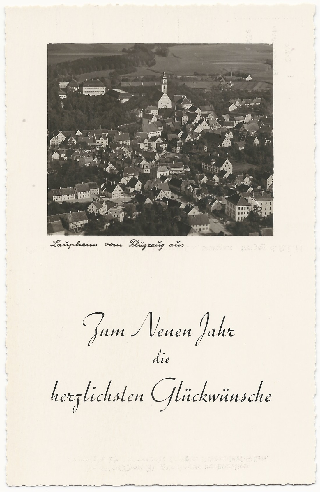 Die vorliegende Ansichtskarte zeigt das Zentrum von Laupheim am 19. 12. 1936. Die Aufnahme stammt von dem Schorndorfer Flugpionier Paul Strähle. Der ehemalige Jagdflieger begann ab 1919 mit der Herstellung von Luftbildern von ganz Deutschland. Sein Archiv mit gestochen scharfen schwarz-weiß Aufnahmen umfasste über 40 000 Bilder. Die Nazis verboten 1938 die Herstellung von Luftbildern durch Paul Strähle. Seit 1955 bis heute führen die Nachfolger die Herstellung von Luftbildaufnahmen weiter. Mai 2024