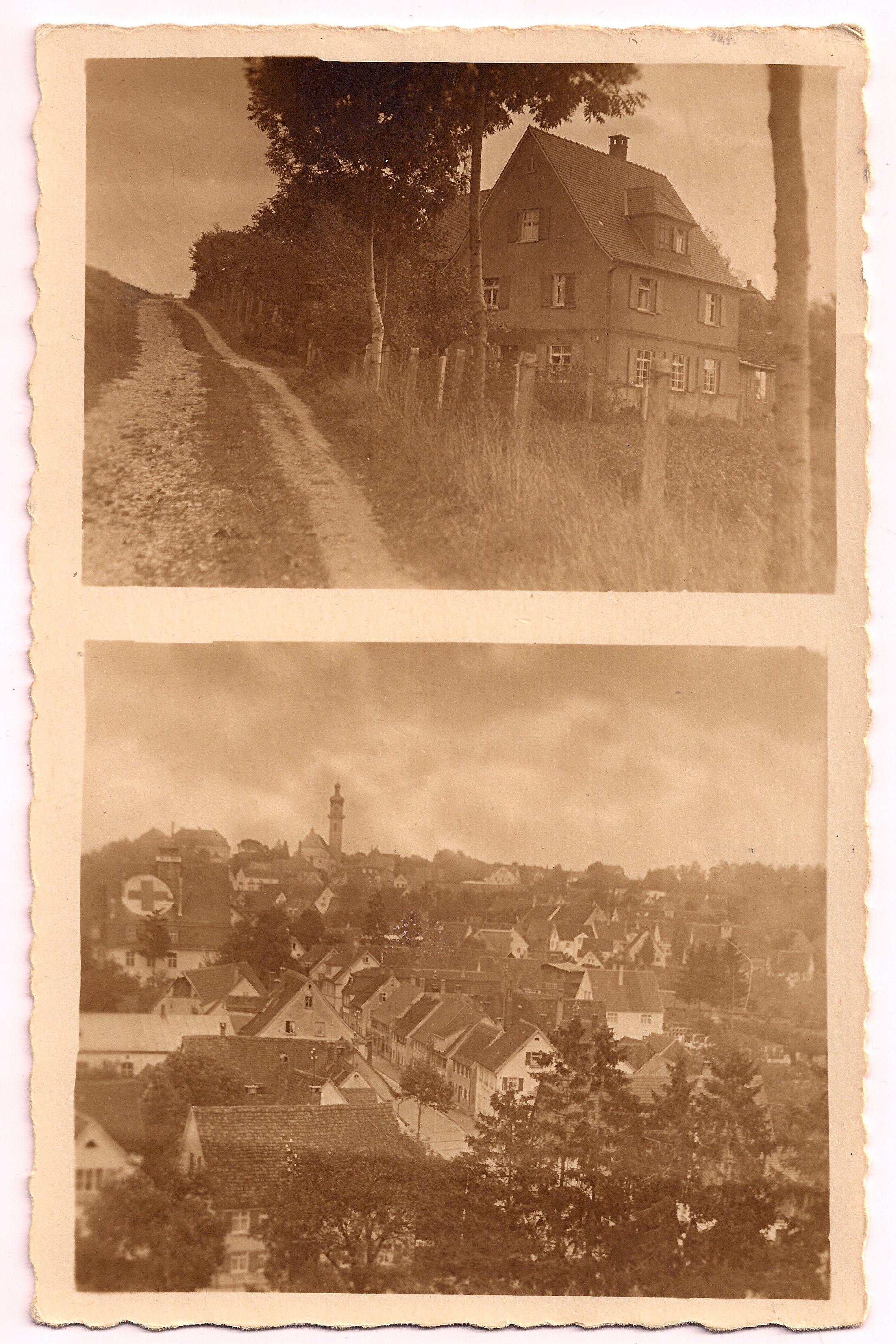 Wenn man von der Bahnhofstraße in die Vorholzstraße einbiegt, kommt man zur Eisenbahnbrücke. Dort beginnt die Eisenbahnstraße, die parallel zu den Schienen zum Stadtbahnhof führt. Der Fotograf stand am Fuß des damals noch unbefestigten Weges und schaute in Richtung Bahnhof. Links erkennt man ein wenig von der Eisenbahntrasse. 1940, als dieses Foto entstand, waren auf der rechten Seite erst zwei Häuser. Im vorderen wohnte Maria Ruchti (Eisenbahnstraße 4). In den vergangenen Jahren wurde das Haus renoviert und umgebaut, so dass das ursprüngliche Aussehen nicht mehr zu erkennen ist. Januar 2011