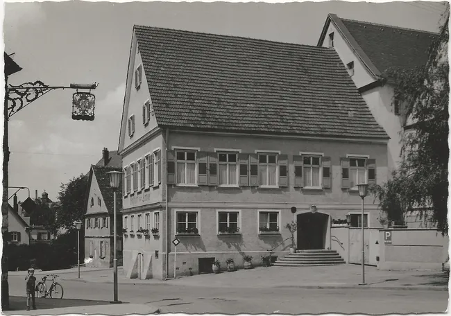 Auf der gleichen Seite steht an der Auffahrt zur Peter und Paul-Kirche noch ein kleines Haus. Nach Josef Braun (Alt-Laupheimer Bilderbogen, Band 2, S. 196) war das das jetzt "abgebrochene Wohnhaus von Ökonom Franz Knoll".