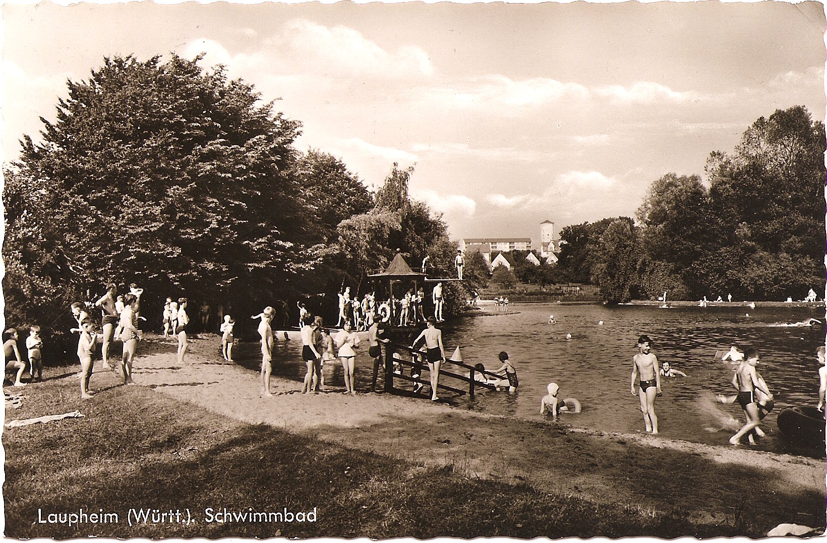 Sie fragen auf Ihrer - wirklich sehr gut gemachten - Seite der Laupheimer Ansichtskarten, ob jemand Informationen zu Ihren Bildern hat. Habe ich - denn der Junge auf dem Bild im Laupheimer Freibad bin mit grösster Sicherheit ich. Dafür spricht erstens, neben der frappierenden Ähnlichkeit, die an die Badehose angeklipste Nummern-Marke für die Umkleidebügel, was mir von meiner Mutter aufgetragen wurde um sie nicht zu verlieren - da war ich so ziemlich der einzige - und zweitens erinnere ich mich noch an einen Tag, an dem im Freibad fotografiert wurde -. mit einer Rollei oder Hasselblad, bei der der Fotograf “ganz komisch“ von oben durch den Sucher sehen musste.