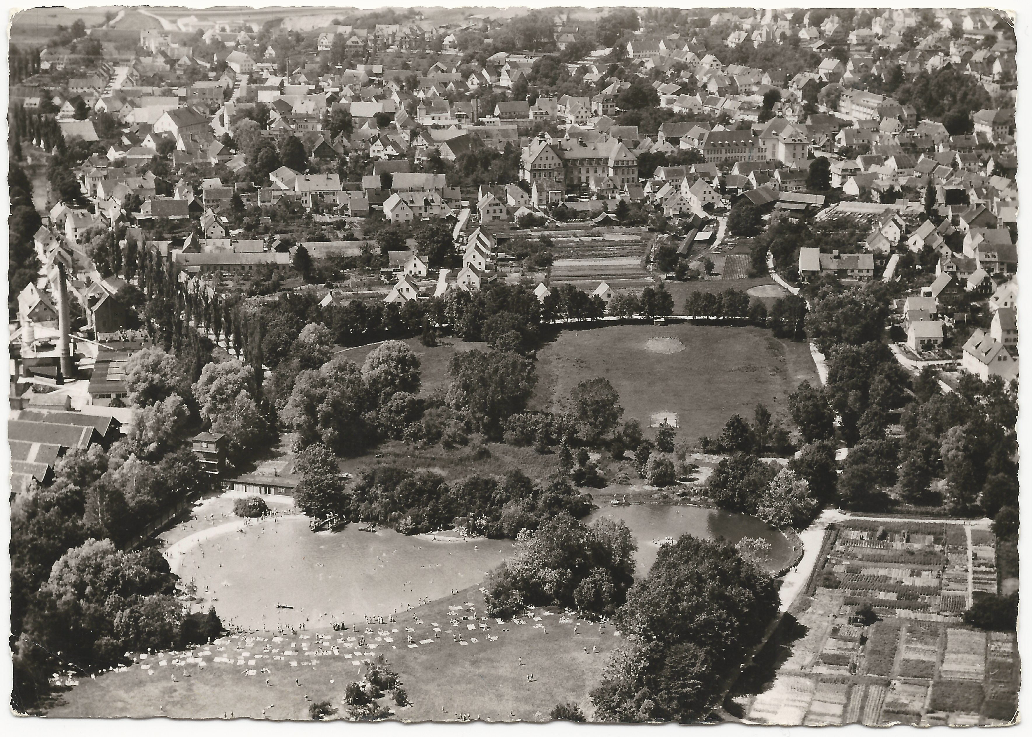 Das Luftbild zeigt das Gebiet um das Städtische Schwimmbad, wie es sich bis in die 60er Jahre darbot.